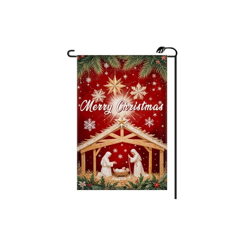 Christmas Birth of Jesus Garden Flag 12x18 Inch Vertical Double Sided Winter Merry Xmas Holy Night Nativity SceneSmall Flags Farmhouse Outside Decoration For Yard SD40