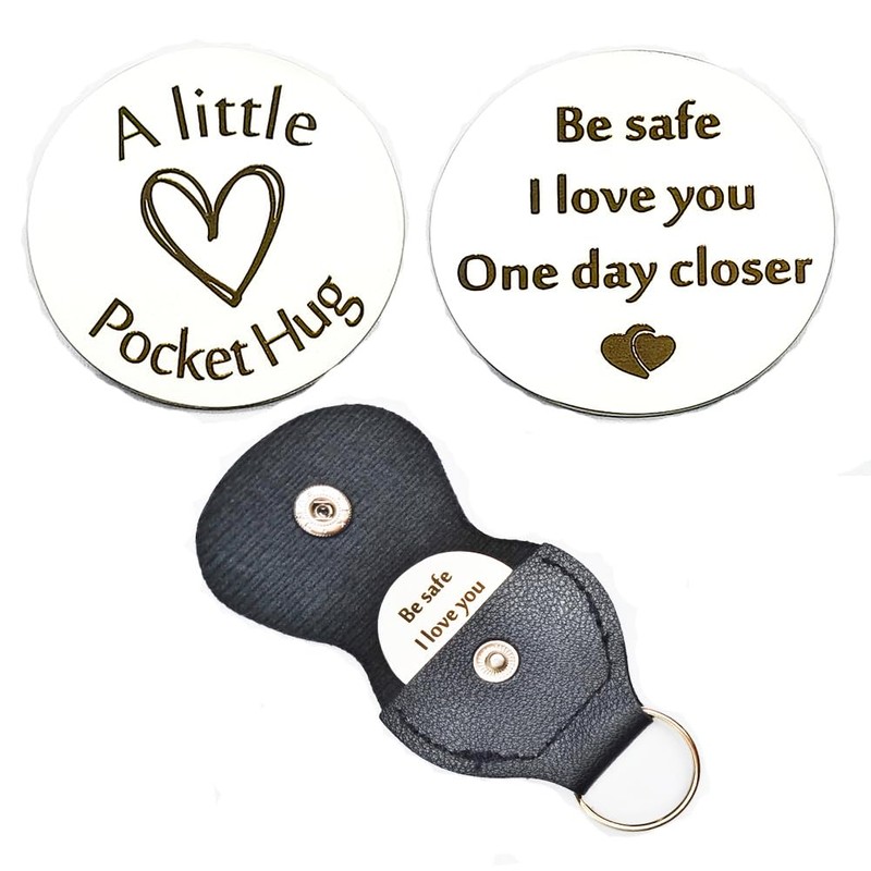 • Encouragement Gifts for Daughter Pocket Hug Token Keychain: The daughter pocket hug coin engraved what you want to say to your daughter, sent daughter pocket token hug, even you're lives far away, she'll always have a hug from you