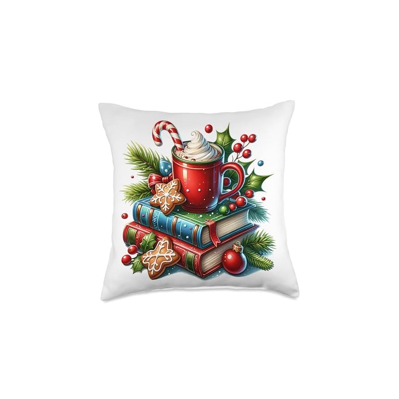 Christmas Books Hot Cocoa Gingerbread Cozy Winter Scene Throw Pillow