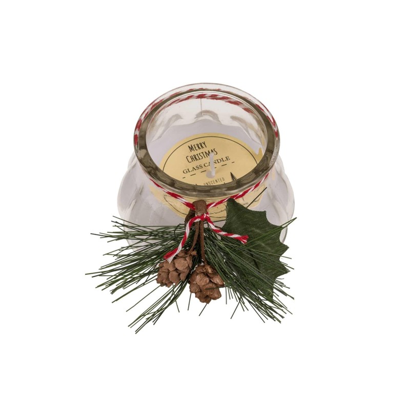 - Beautiful candles in glass with Christmas decorative elements