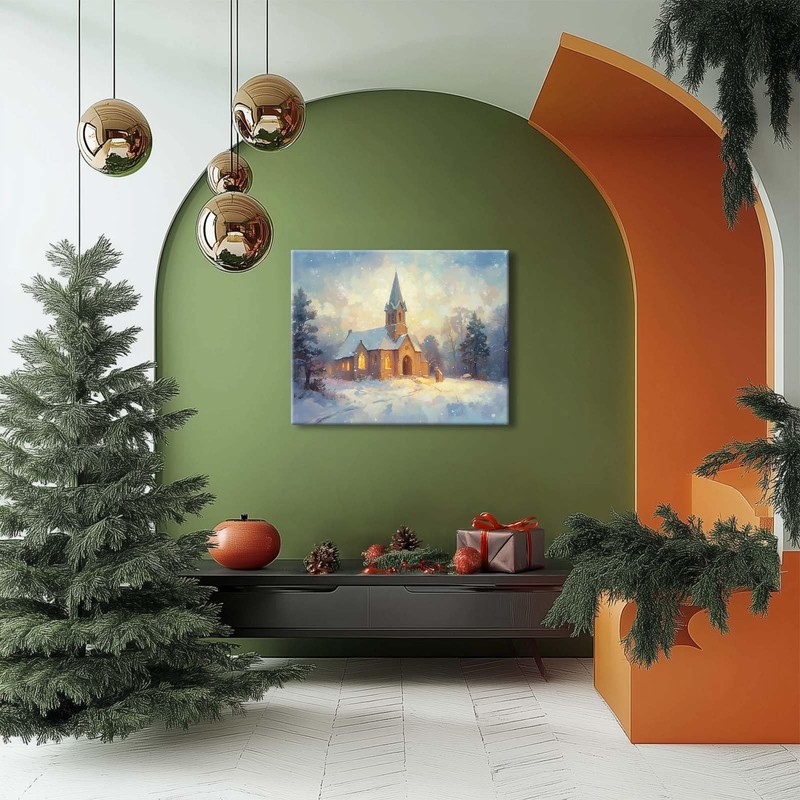 - Serene Holiday Ambiance Wall Art: Embrace the quiet beauty of a winter night with this stunning canvas print of a snow-covered church, softly illuminated from within. This peaceful scene adds a touch of reverence and warmth to your holiday decor, ideal for creating a calming, festive atmosphere in any room. Perfect for the living room, entryway, or dining area, this artwork brings the spirit of Christmas to life.