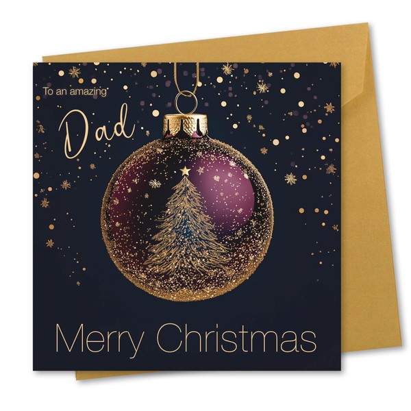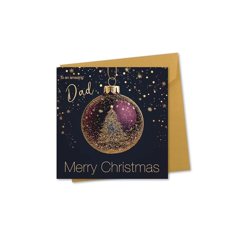 Christmas Card for Dad. Bauble Design. Eco-friendly & UK Made. Verse Inside. 148x148mm card size.