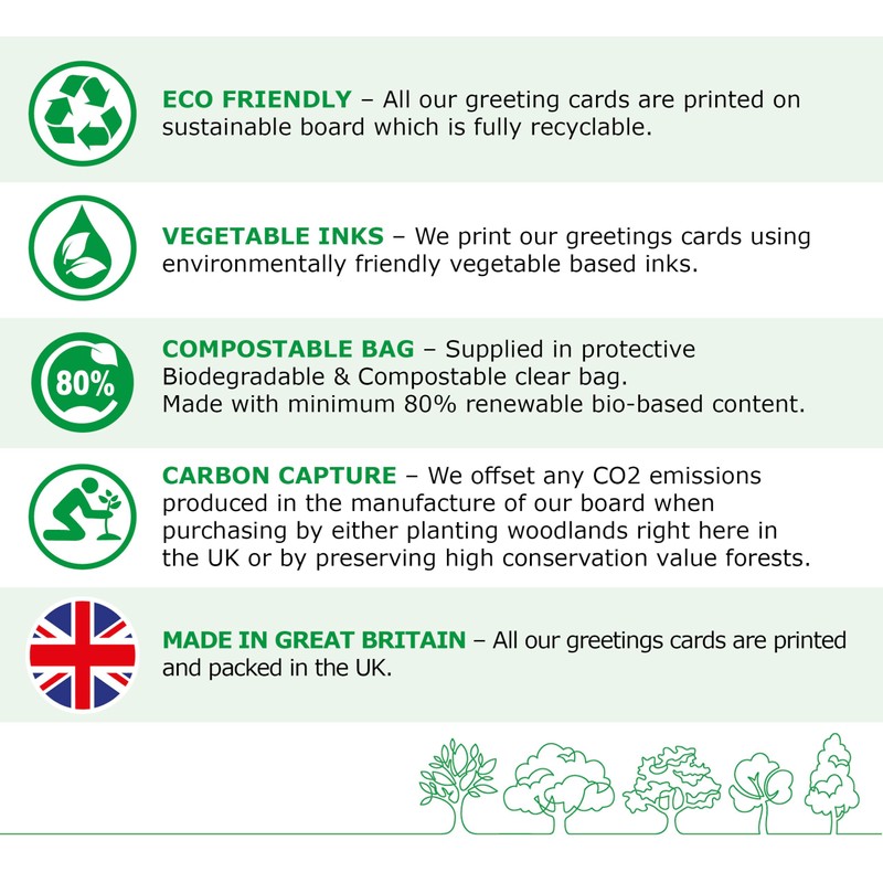 We also offset any CO2 emissions produced in the manufacture of our paper and board, when purchasing, by either planting woodlands right here in the UK or by preserving high conservation value forests.