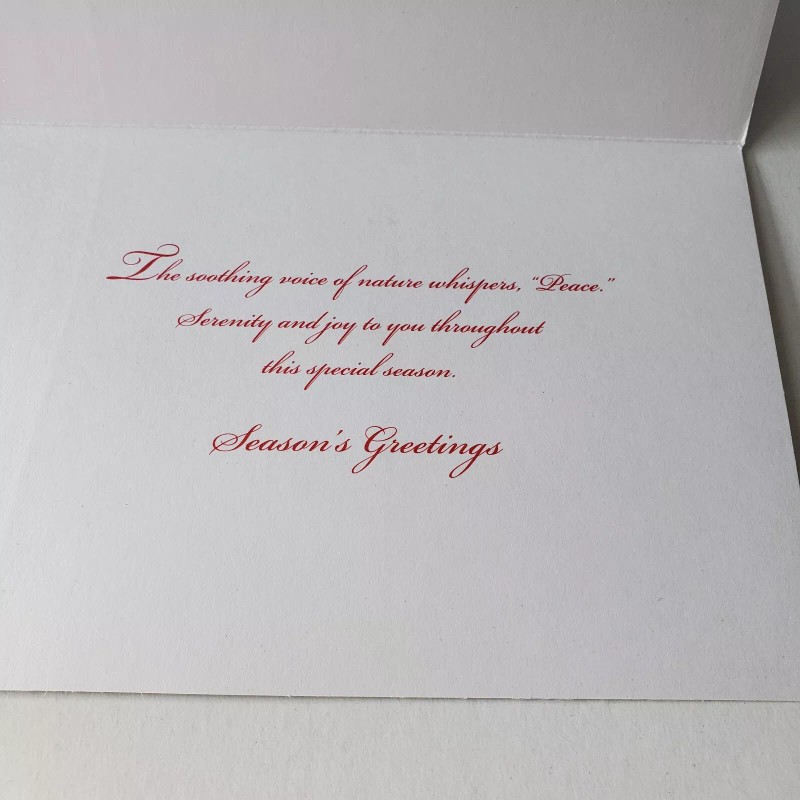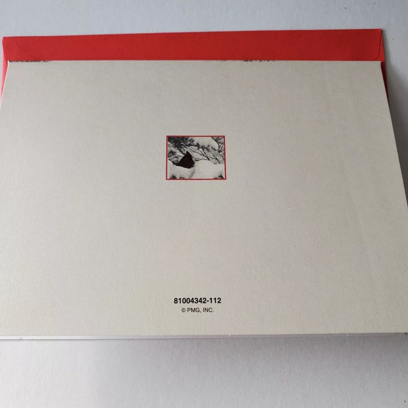 Christmas Card Glittery Snowy Winter Scene with Fence Trees and Red Birds