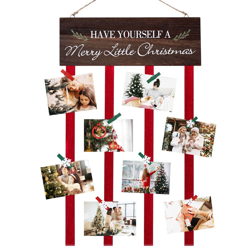 - 【Christmas Card Holder】The festive card holder is suitable for your Christmas decor, Photos and pictures record happy and warming time with friends and family. These Xmas wall sign decor are a great addition to your home with festive clips and ribbon