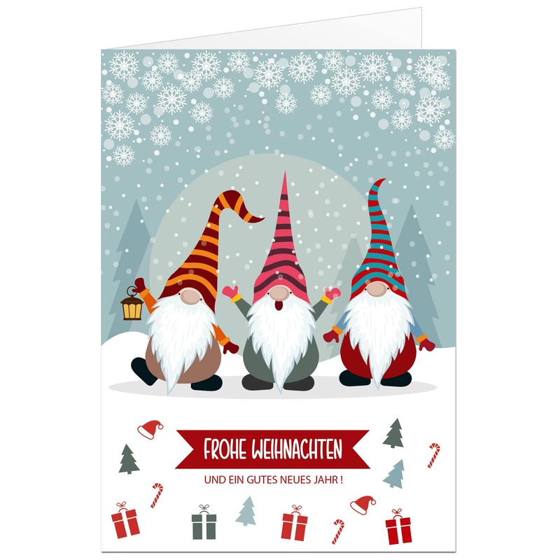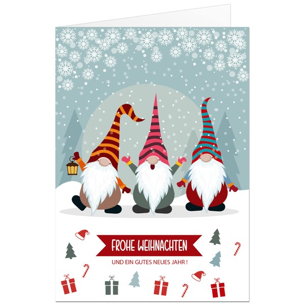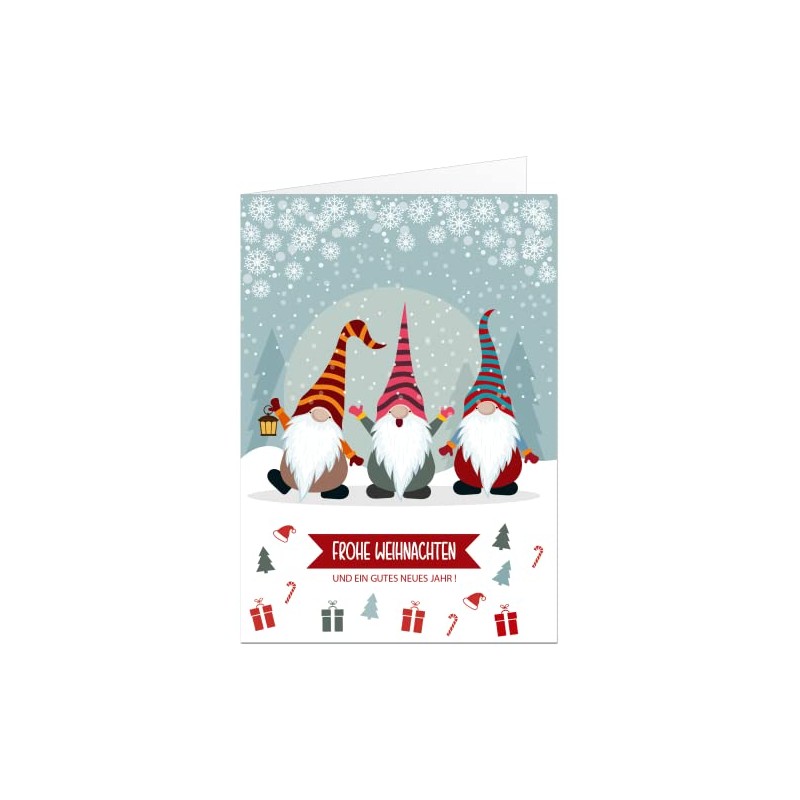 Christmas Card Set Gnome Trio with Envelope (Folding Cards 17 x 12 cm – Not the Smaller A6 Format) (Pack of 50)