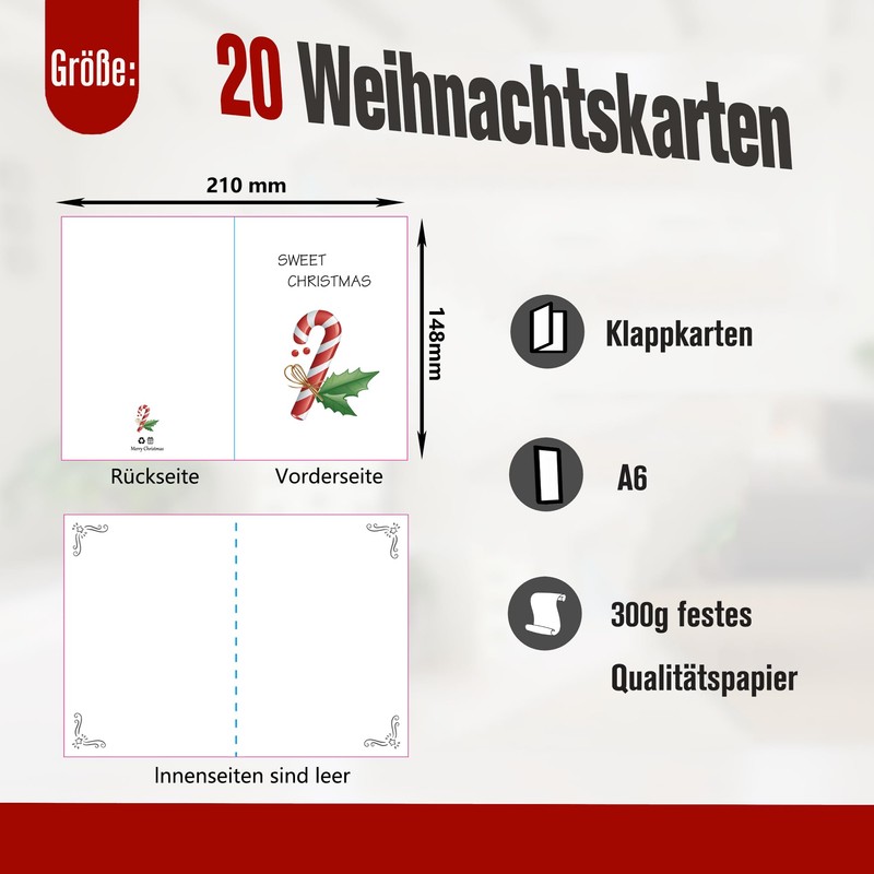 20 x cool Christmas cards with beautiful sayings (DIN A6 format).