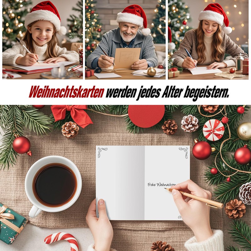 - Interesting design: each greeting card has been carefully designed by professional designers and contains numerous Christmas elements such as glittering Christmas trees, cute reindeer, mysterious Santa Claus and much more. Choose our Christmas greeting cards to make this Christmas even warmer and more memorable!