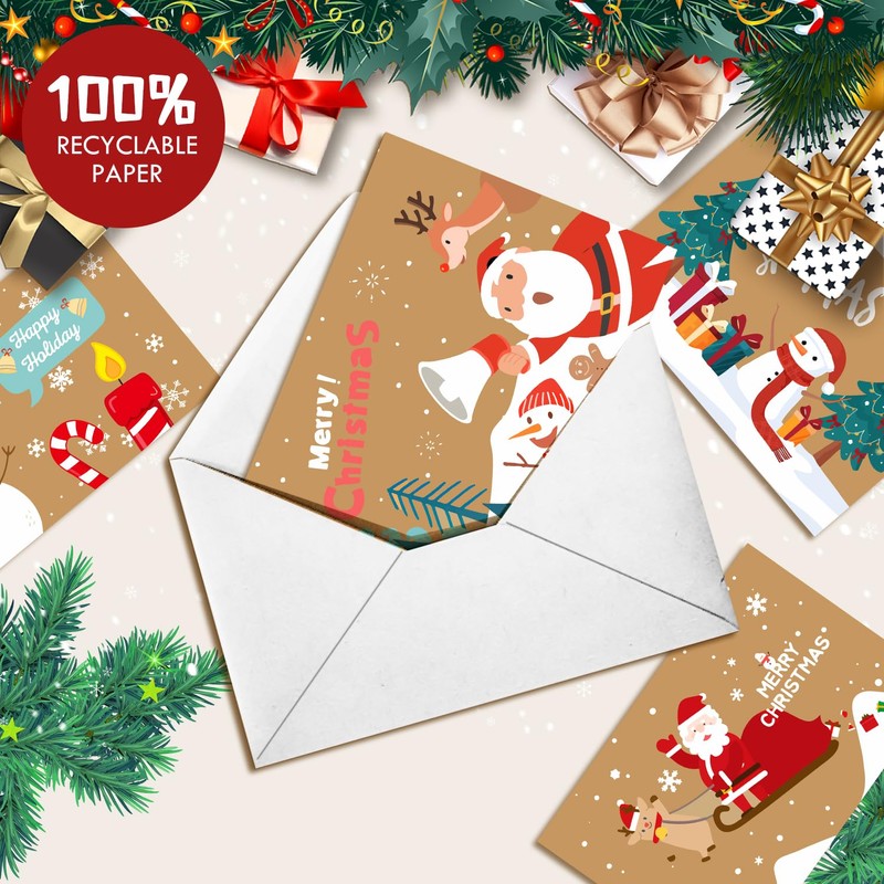 - 🎄【Umschläge und Aufkleber】Dieses Set enthält Kraftumschläge und passende Aufkleber. Wenn Sie mit dem Schreiben fertig sind, stecken Sie die Karte in einen Umschlag und verschließen Sie ihn, um sie persönlicher und formeller zu gestalten.