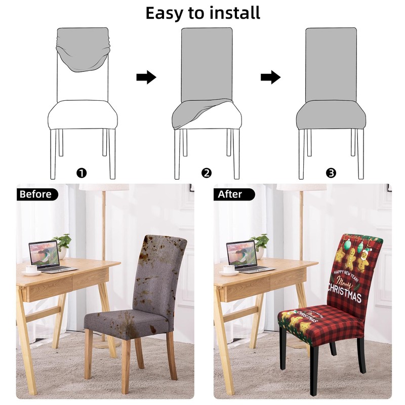 - 【Easy to Launder and Install】With just a few simple steps, you'll have a snug and tailored look in no time. Installation and removal are a cinch you'll be done in less than a minute. Our Christmas slipcovers for dining chairs are a snap to keep clean. Just throw them in the washing machine instead of battling upholstery stains by hand. Colors always remain vibrant and the fabric won't pill or become misshapen, thanks to durable materials that keep the colors good, even after multiple washes.