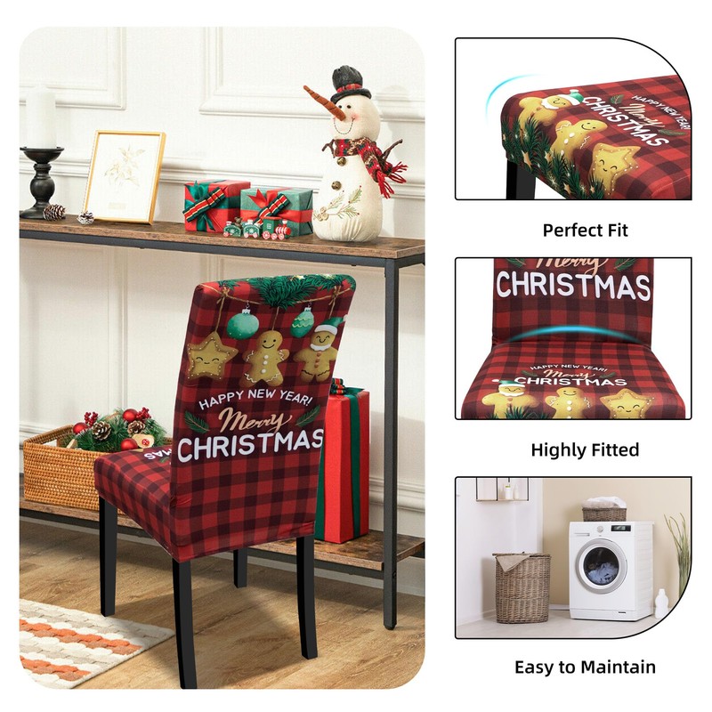 - 【Stylish Home Decor】 We've got a variety of printed Christmas dining room chair covers to match your modern style. You can switch up the colors with the seasons to add some fashion and elegance. Suitable for public places, you want to achieve a uniform chair style and still keep it clean, then you should definitely choose our chair covers. These premium chair slipcovers are an perfect budget-friendly solution to refresh any worn upholstery or chairs with aged surface.