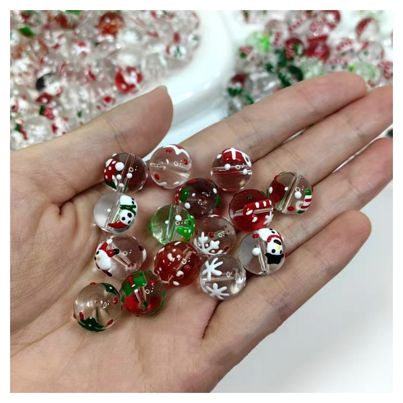 Christmas Character Glass Bead Cute Charm Accessory Free Size/03 40ea