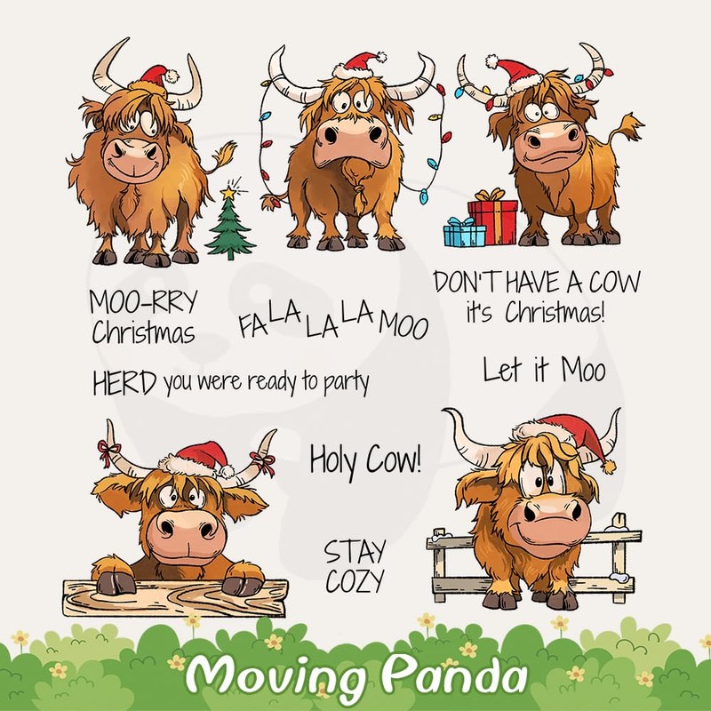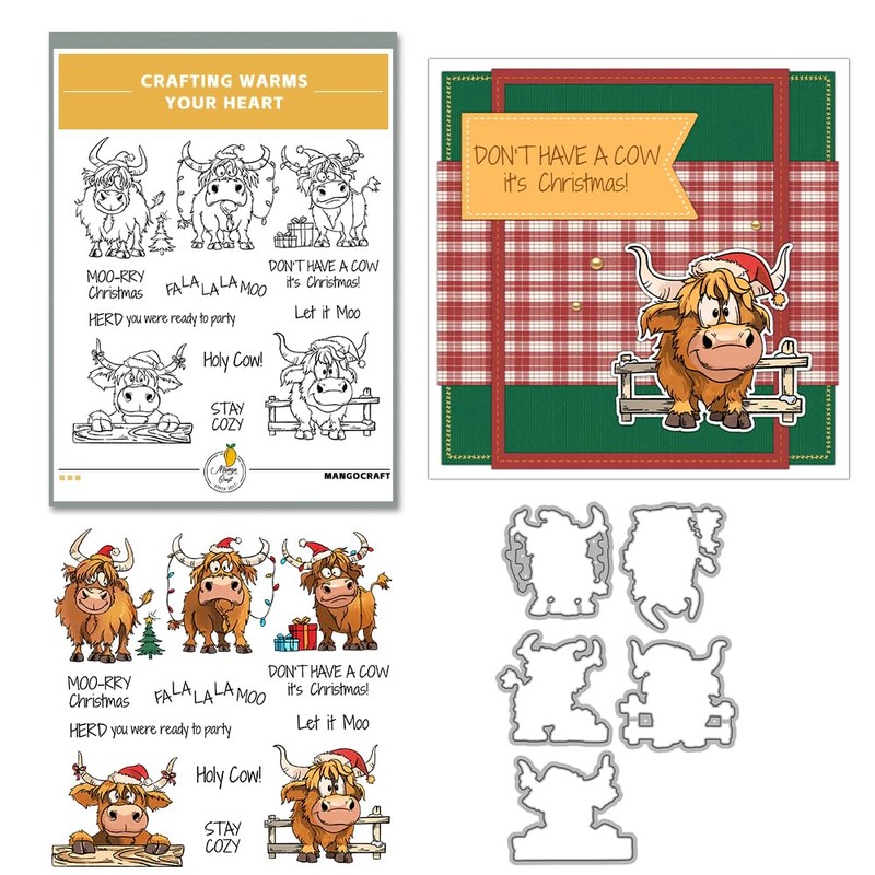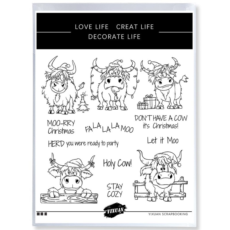 Christmas Clear Silicone Stamp Set for Card Making, Scrapbooking Journaling Reusable Transparent Holiday Craft Stamps with Santa, Snowflakes,Stamp and die Sets (Christmas Cow)