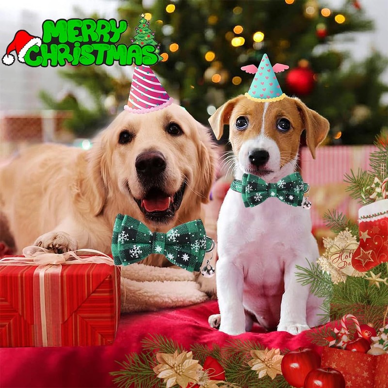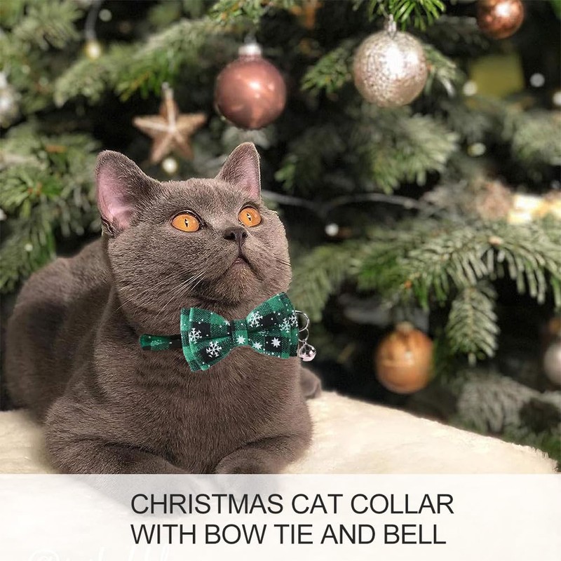 Christmas Collar, Christmas Collar Dog Cat Collar with Bow, Dog Collar Bow Tie, Pet Collar for Kittens and Dogs, for Small Medium Large Dogs Cats Puppies (Green)