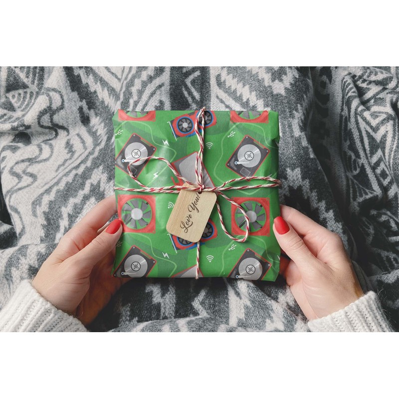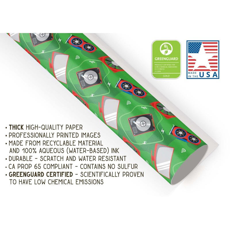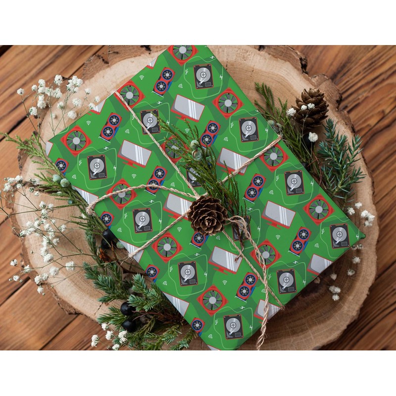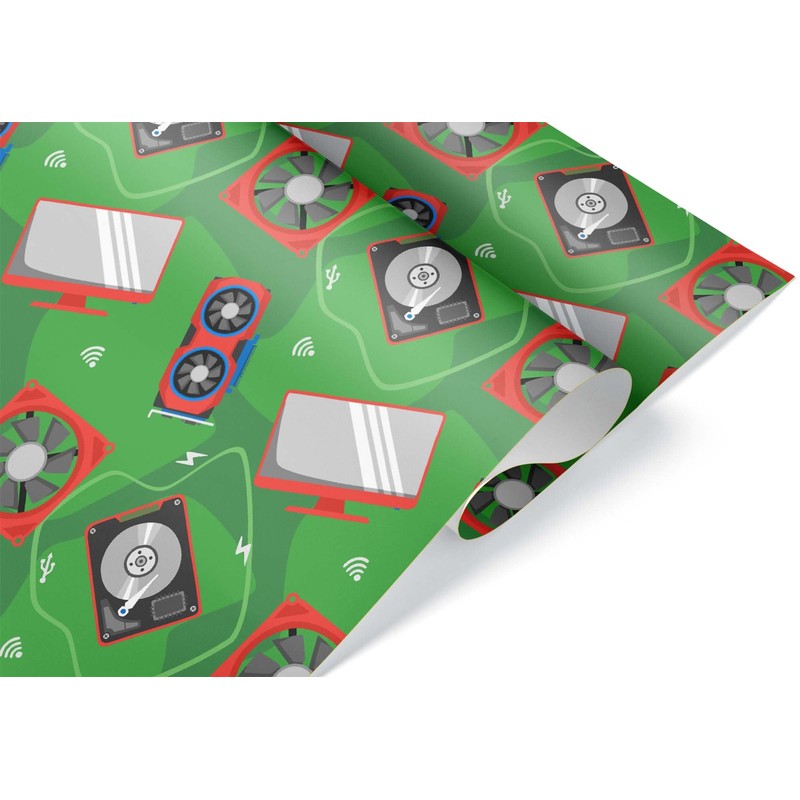 Christmas Computer Wrapping Paper, Premium PC Part Gift Wrap, Computer Geek X-Mas Present, Tech Accessory Birthday Holiday Party Decorations Decor (One 20 inch x 30 inch sheet)
