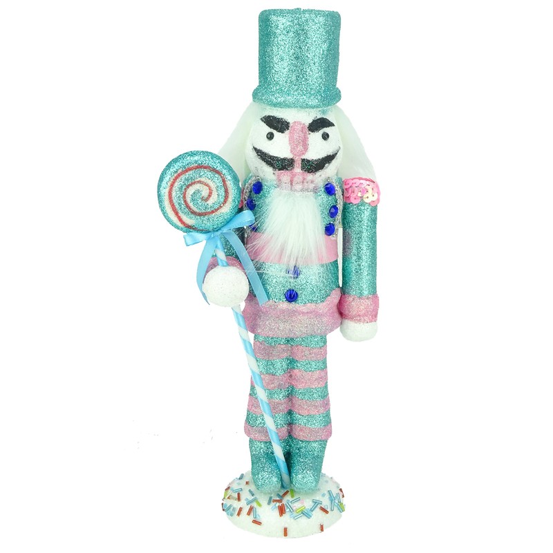 - The nutcracker holds a lollipop and stands atop a sprinkle and glittered covered base. This unique decoration would look stunning as the centre piece of your Christmas table or standing on your mantle piece or window sill!