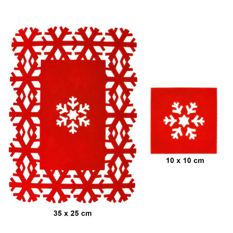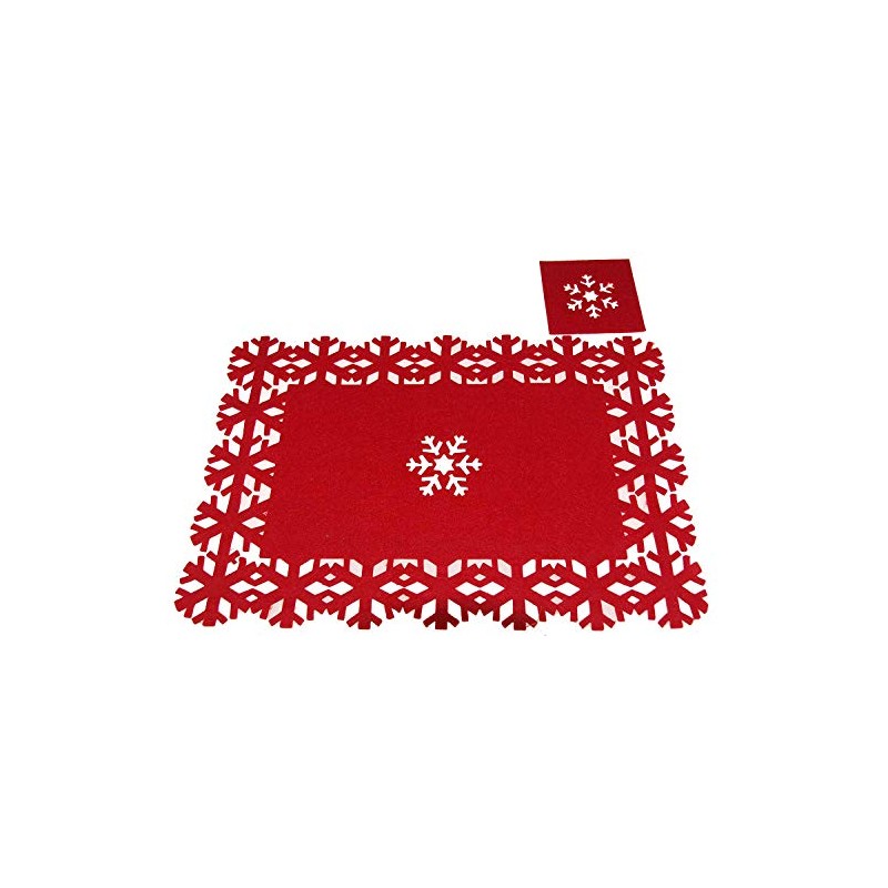 Christmas Concepts® 8 Piece Red Felt Christmas Snowflake Place Mat And Coaster Set - 4 Place Mats + 4 Coasters