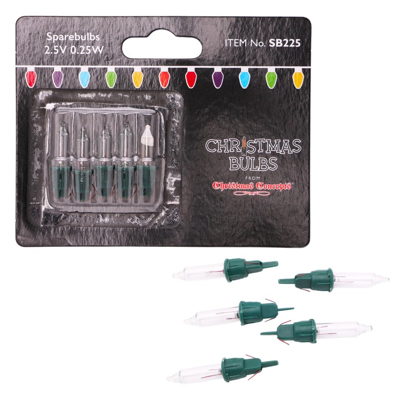 Christmas Concepts® Pack of 4 Clear Push in Spare Bulbs & 1 Fuse Bulb - 2.5v 0.25w - Replacement Bulbs