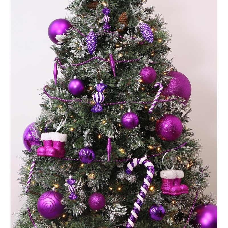 - This pack contains 5 purple baubles in total, including an assortment of glitter, matte, shiny and glitter swirl designs.