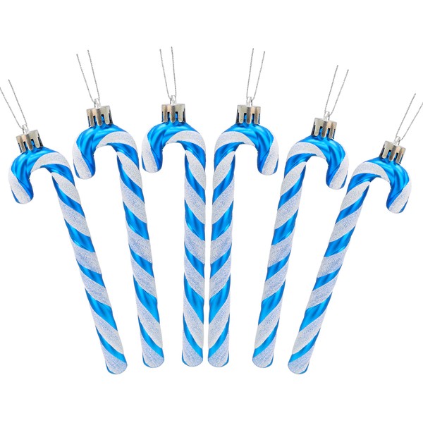 Christmas Concepts® Pack of 6-13cm Glitter Candy Cane Christmas Tree Decorations (Royal Blue & White)