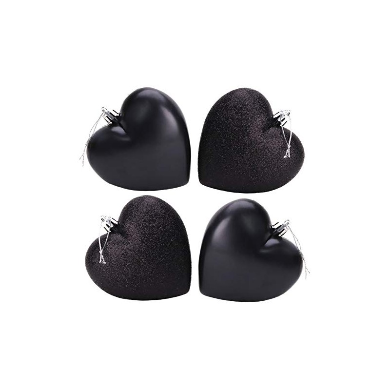 Christmas Concepts® 4-100mm Heart Shaped Baubles - Matte & Glitter Design - Christmas Decoration (Black)