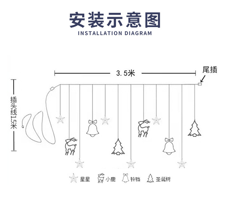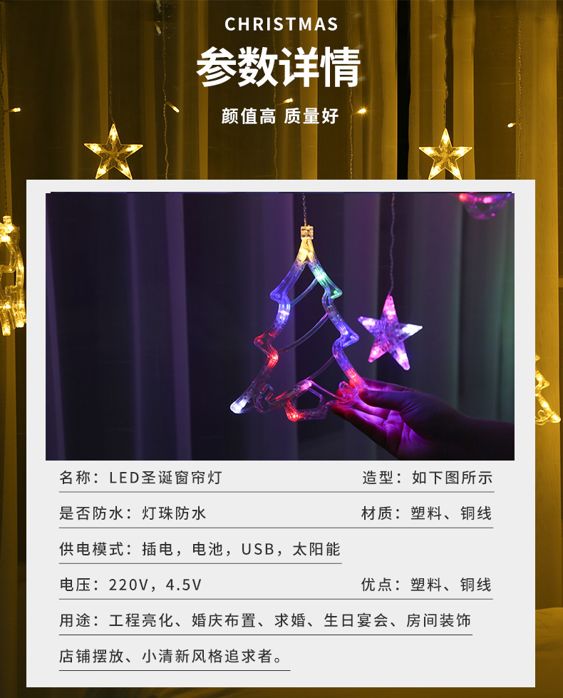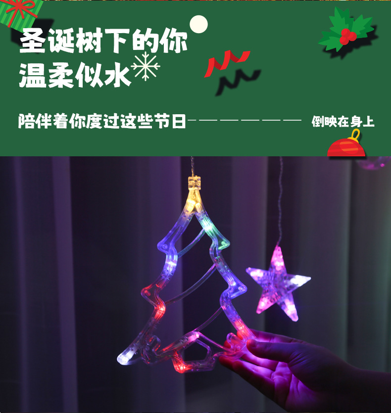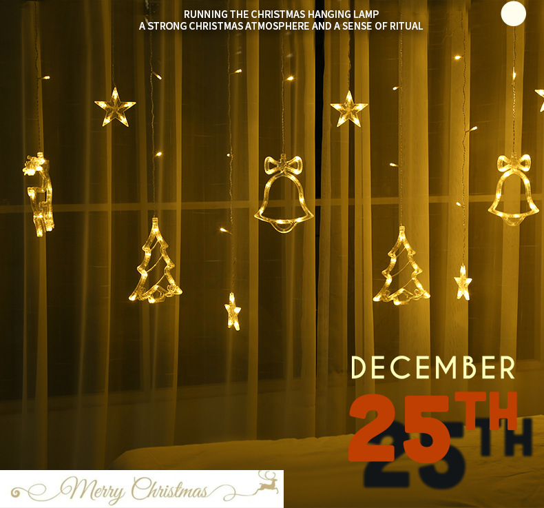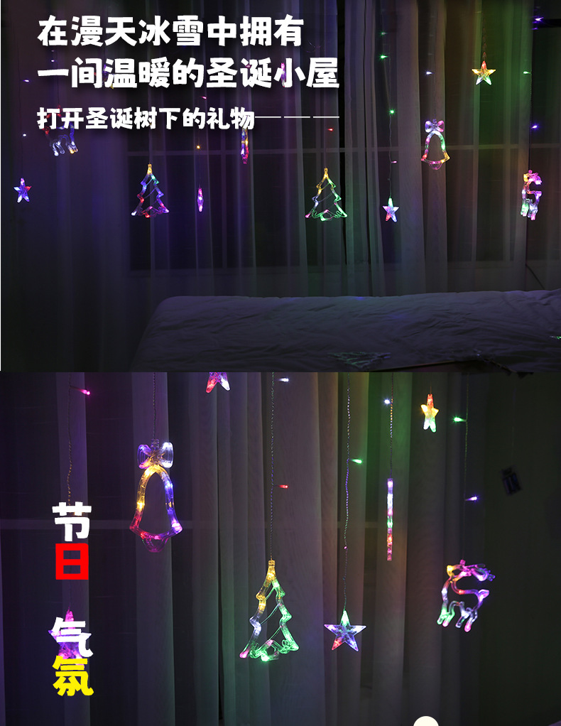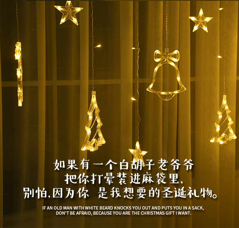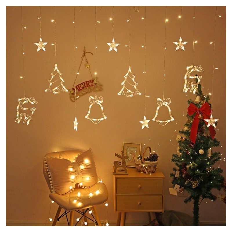 Christmas Curtain String Lights with Beaded Ornaments - Bedroom Decor Idea lf1016 One Size / Warm Light 2ea