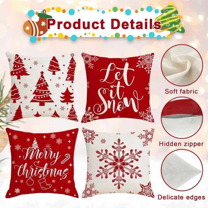 - 【Christmas Decorative Cushion Covers】You will receive 4 pieces of lovely Christmas cushion covers, the size is 45 x 45 cm/18 x 18 inches, no filling or lining, you can place them as you like, add a festive atmosphere to your home