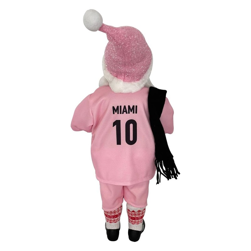 - Miami Soccer Theme: This Santa Claus figurine is designed with a fun Miami soccer twist, holding a soccer ball and enjoying a traditional mate, perfect for soccer fans and Miami enthusiasts alike.