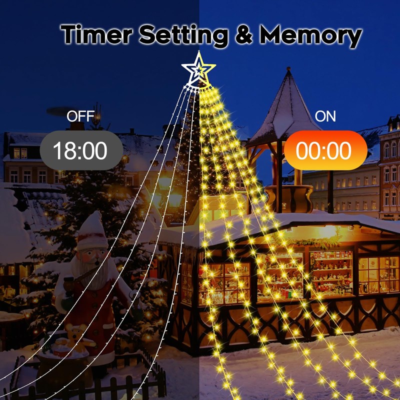 - 【Timer Setting and Memory Functions】The LED Christmas tree lights feature a built-in timer (6 hours on, 18 hours off daily) for effortless, energy-saving operation. The memory function retains your last mode setting, even after powering off.