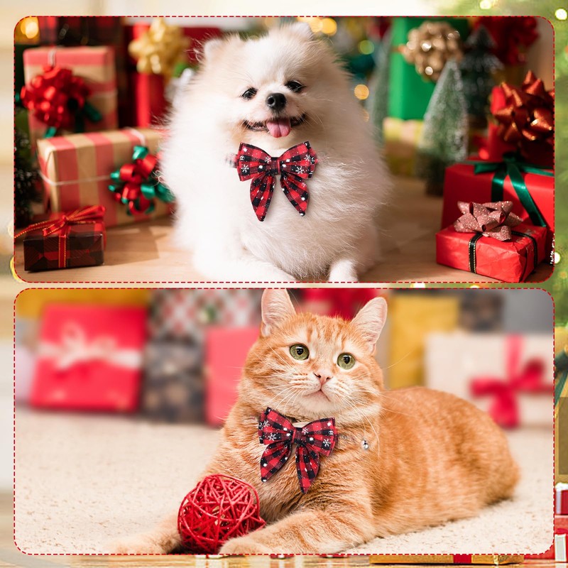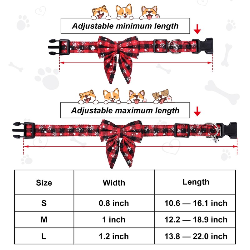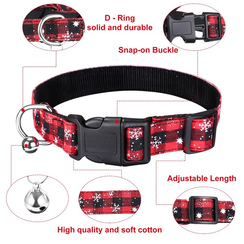 Christmas Dog Collar, Adjustable Cotton Pet Collar with Bow for Small Medium Large Dogs Pets (Red Plaid, Medium)