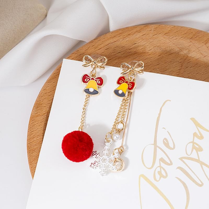 Christmas Earrings Cute Christmas Tree /Reindeer /Snowflake with Red Pom Pom Ball Drop Earrings Asymmetric Bow Jingle Bell Dangle Earrings White Snowflake Red Plush Ball Dangle Earrings Women Xmas Gift (jingle bell)
