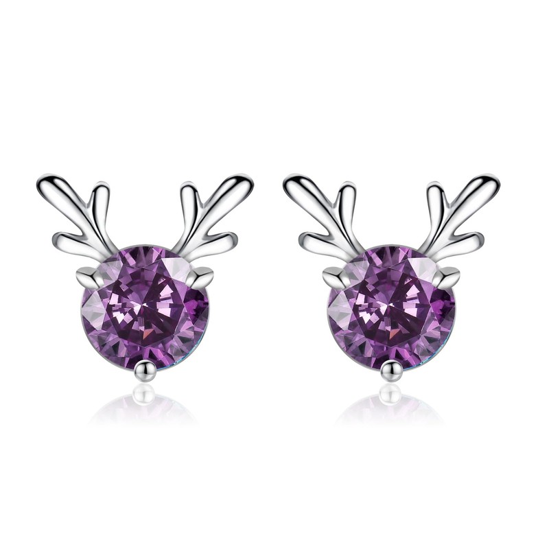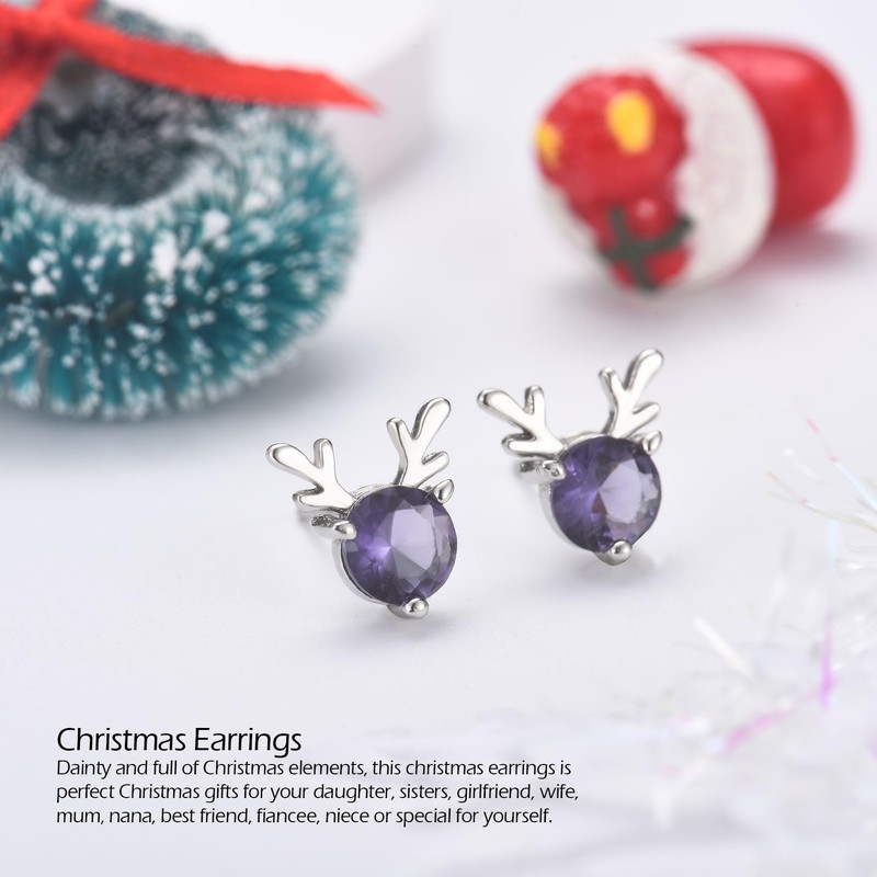 Christmas Earrings for Women Girls, Silver Christmas Elk Deer Stud Earrings with Purple Cubic Zirconia, Christmas Xmas Presents Jewellery Xmas Earrings | Christmas Earrings Gifts