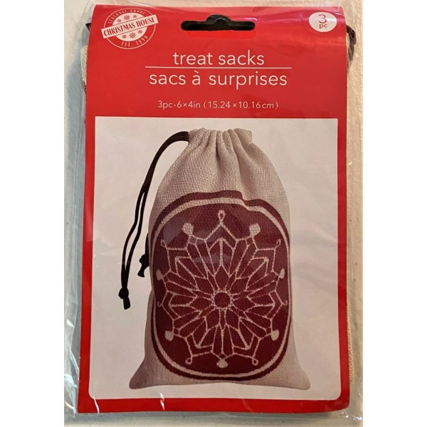 Christmas Fabric Draw String Treat Sacks 3 per pack - Snowflake