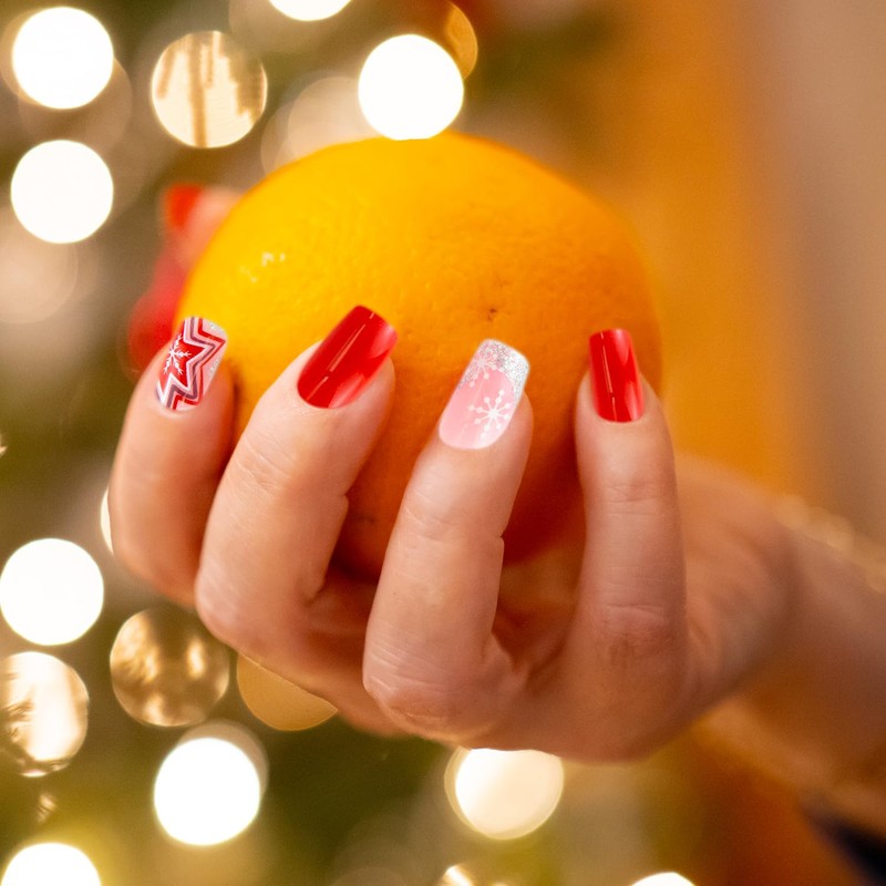 - 【CHRISTMAS PRESS ON NAILS】This Christmas false nails set are designed with Christmas snowflakes pattern, with bright color and lovely styles, making your nails more charming and fashionable during Christmas. These Christmas fake nails surely give you a Christmas season cheerful this year.