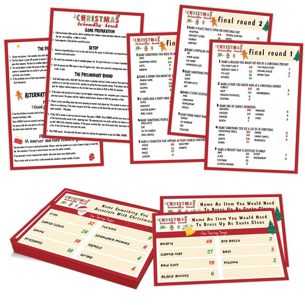 Christmas Family Feud Game, Christmas Party Games for Adults, Friendly Feud Quiz for Family Game Night Funny Trivia for Groups, 12 Question Game Cards and 3 Final Round Cards, 04