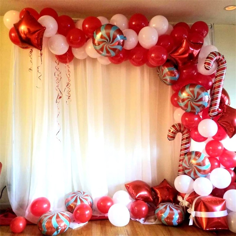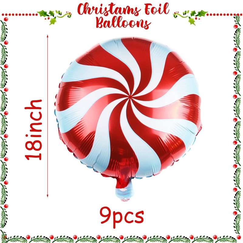 • 🍭 Sweet Christmas Foil Balloons 🍭 - You will get 9pcs 18 inch red Christmas candy mylar foil balloons set with 1pc ribbon. Perfect for decorating Christmas candy theme party.