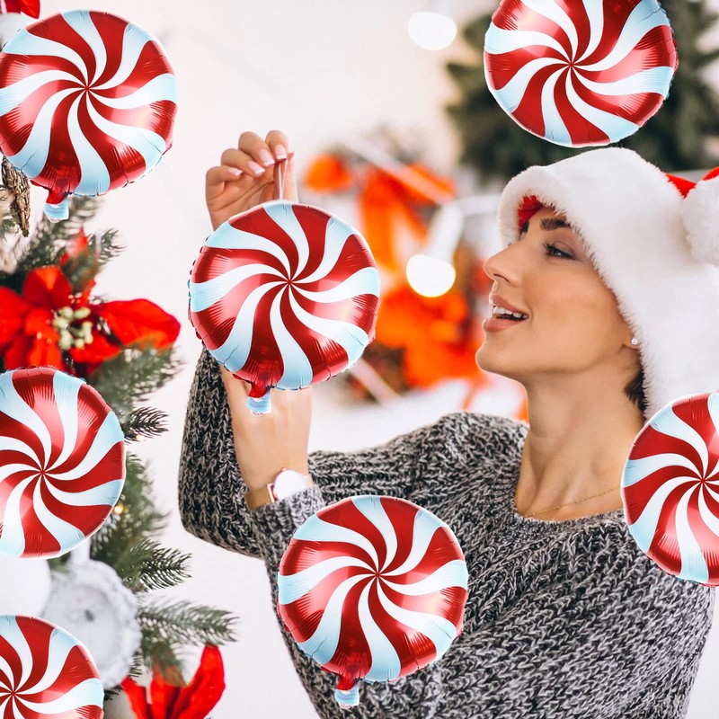 • 🍭 Perfect Size & High Quality 🍭 - These shiny and cute Xmas swirl candy balloons are made of high quality aluminum foil, all the balloons are safe, durable, non-toxic, strong and light. The globos de navidad can be reused. Just fill 90% of the balloon that could allow the balloon to expand completely.