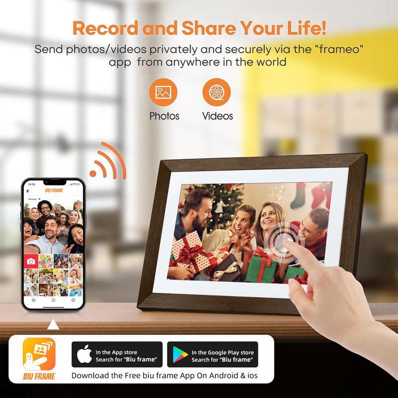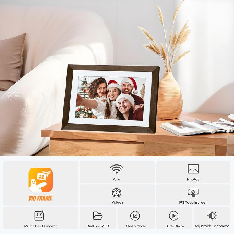 【Christmas Gift】10.1 Inch WiFi Digital Picture Frame - Smart Wood Video Frame with Cloud Storage, Auto-Rotate, Easy Photo Sharing Biu Frame App Perfect Gift Idea - Color: 10.1":Black Wood-Universal gift box-biu Frameo app