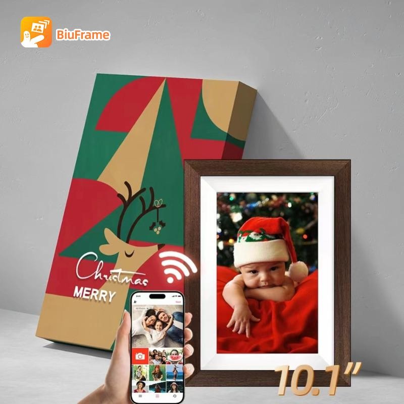 This 10.1-inch WiFi digital photo frame comes in three classic frame styles: white, wood, and black, with nine unique holiday gift box designs. It’s the perfect gift choice for Christmas, Thanksgiving, weddings, family gatherings, and pet memories. Easily upload and share photos through WiFi without any complicated setup, allowing your cherished moments to be displayed in your home effortlessly. The high-definition display brings each photo to life, offering a vivid and realistic visual experience. This frame is not only a wonderful way to showcase your memories but also an ideal gift for family and friends.