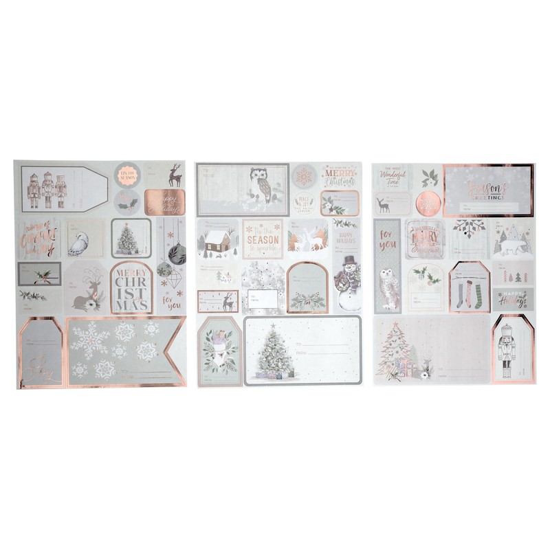 Christmas Gift Tags, Stickers & Raffa String Kit (171 Piece Set) (White & Rose Gold)