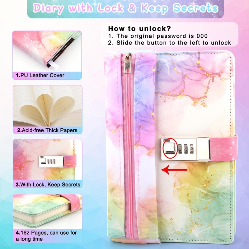 - 💗Diary with lock for girls & keep secrets securely: this diary with a creative password lock is a safe place for girls to express their thoughts, feelings and dreams freely. Children and teenagers are full of creativity and strong imagination. The journal with lock will be your best friend and your secret garden. And only you, the one who knows the password, can read it. Teenager girls gift 9 10 11 12 13 14 15 16 years.
