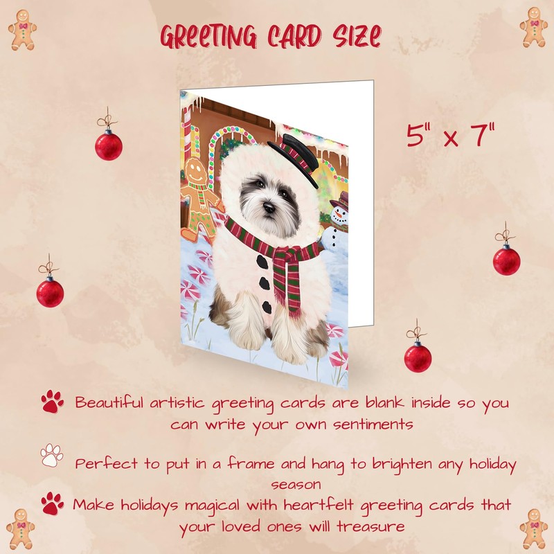 Christmas Gingerbread House Candyfest Tibetan Terrier Dog Greeting Cards - Adorable Pets Invitation Cards with Envelopes - Pet Artwork Christmas Greeting Cards GCD71291 (1 Greeting Card)