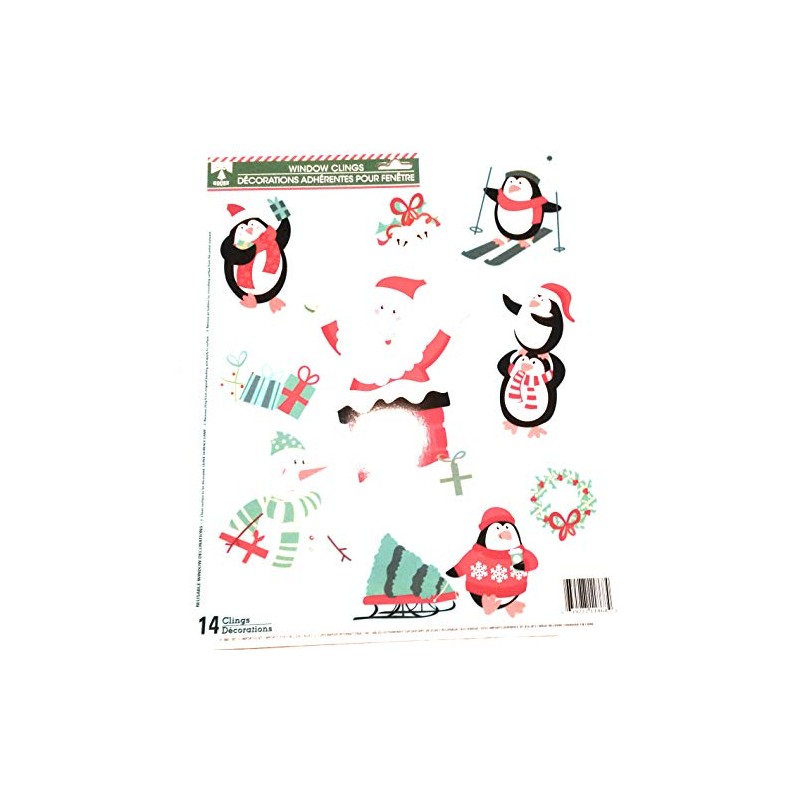 Christmas Glitter Reusable Window Cling ~ Penguins Snowman Reindeer