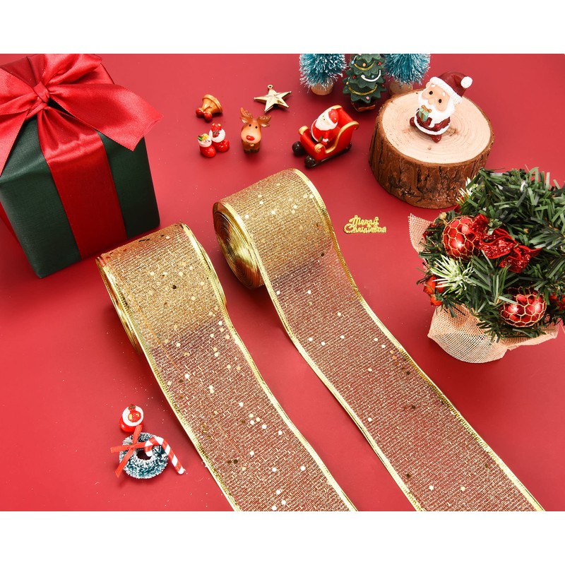 - Perfect Size: Gold metallic glitter ribbon measures about 2.5 inches in width and 10 yards in length per roll, totally 20 yards. Long enough for you to use, and you can easily cut it into diverse lengths and shapes according to your various decoration or exquisite craft project needs. Each ribbon is provided with a pin to fix the end in order to prevent messing up when storage