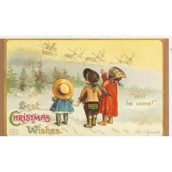 CHRISTMAS GREETING THREE CHILDREN "WILL HE COME" ELLEN CLAPSADDLE REPRO (X-31)