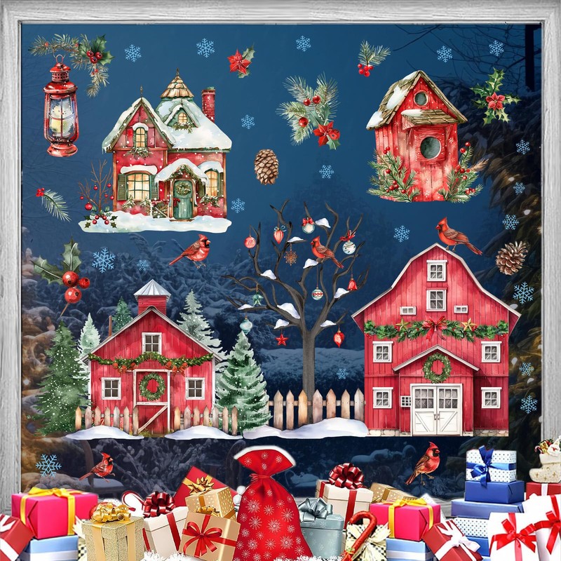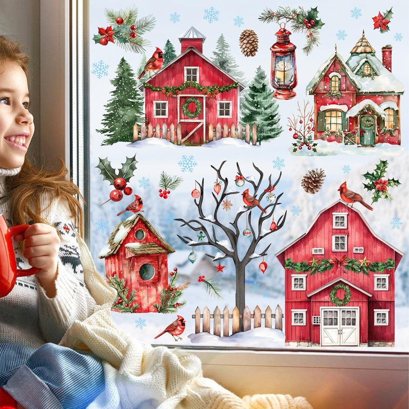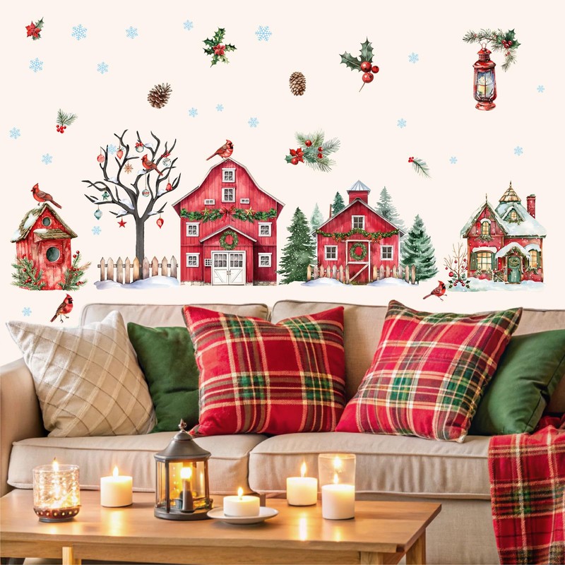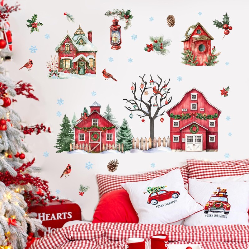 - Large Christmas Snow House Wall Stickers are perfect for decorating bedroom, living room, kid room, playroom, classroom, kitchen, bathroom, dining room for christmas party supplies, winter wall stickers, xmas wall decals, holiday window stickers or new year wall decorations.
