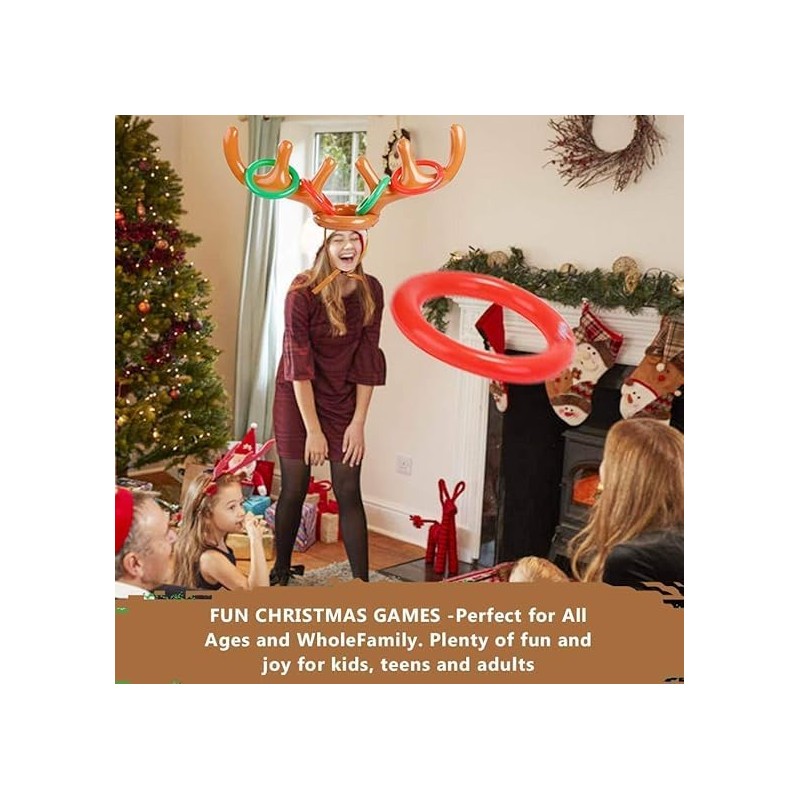 - Inflatable reindeer antler game: 11-piece inflatable antler ring play set contains 2 inflatable antlers, 1 air pump and 8 colourful inflatable rings, a fun Christmas party game for the whole family.