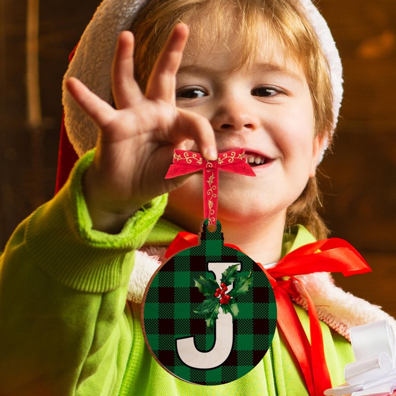 - Unique Hanging Ornaments for Christmas Tree, Stocking or Gift Decor: These wooden Initial Ornaments can be used for different purposes. You can use to decorate your Xmas gift's package or your Christmas Tree decorations. There is no limit to use this letter wooden baubles ornament! Just choose your initial letter and make special the most important day of the year! Green - black Xmas background & red ribbon of Christmas Initial letter Baubles will match with Christma Spirit.