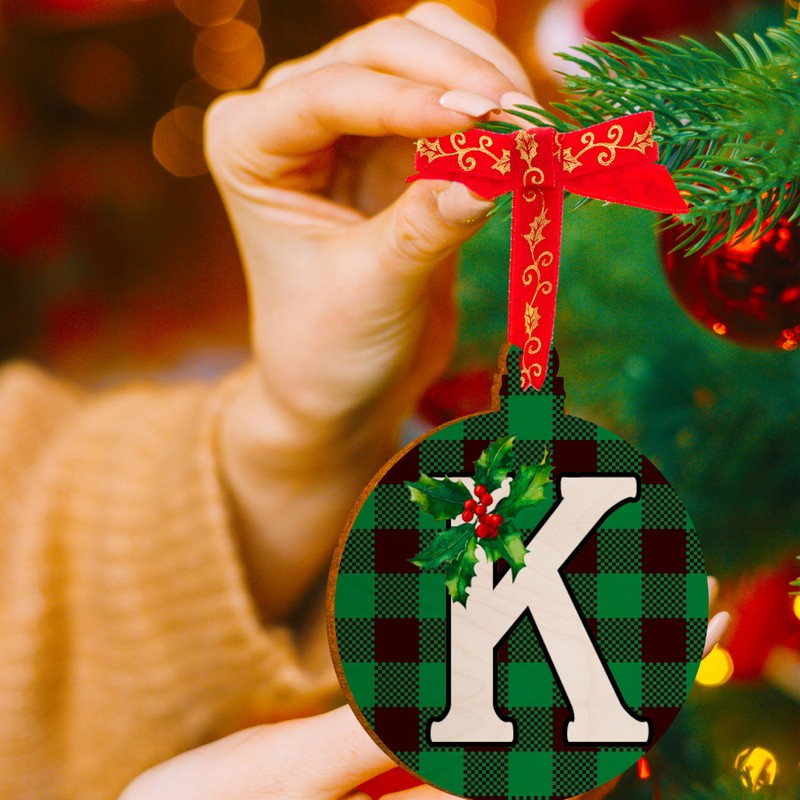 - Unique Hanging Ornaments for Christmas Tree, Stocking or Gift Decor: These wooden Initial Ornaments can be used for different purposes. You can use to decorate your Xmas gift's package or your Christmas Tree decorations. There is no limit to use this letter wooden baubles ornament! Just choose your initial letter and make special the most important day of the year! Green - black Xmas background & red ribbon of Christmas Initial letter Baubles will match with Christma Spirit.