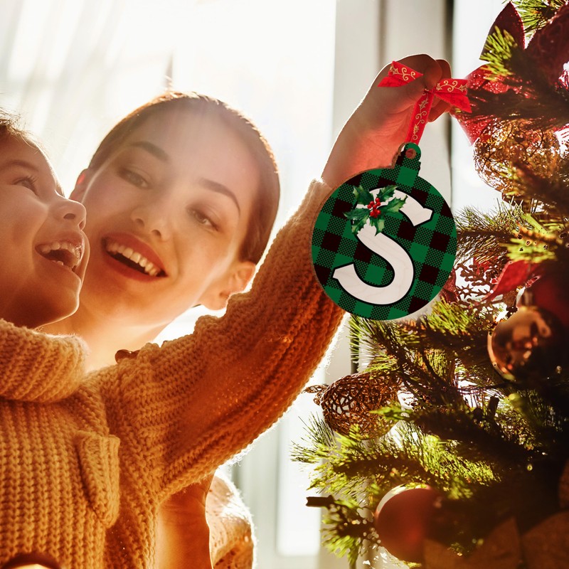 - Unique Hanging Ornaments for Christmas Tree, Stocking or Gift Decor: These wooden Initial Ornaments can be used for different purposes. You can use to decorate your Xmas gift's package or your Christmas Tree decorations. There is no limit to use this letter wooden baubles ornament! Just choose your initial letter and make special the most important day of the year! Green - black Xmas background & red ribbon of Christmas Initial letter Baubles will match with Christma Spirit.